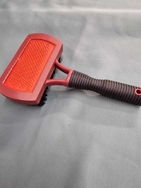 Βούρτσα σκύλου κατάλληλη για κάθε τρίχωμα διπλής όψης. Από τη μία βούρτσα χτενίσματος slicker, με υπό γωνία δόντια όπου αποφεύγουν το δέρμα και ξεμπερδεύουν το τρίχωμα αφαιρώντας τις νεκρές τρίχες, και από την άλλη βούρτσα για χτένισμα χωρίς να τραυματίζουμε το δέρμα.