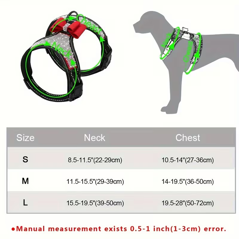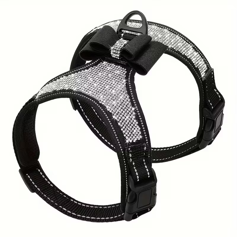 Επιστήθιο για βόλτες με σκύλο ή γάτα, διακοσμημένο με λαμπερά τρουκς/διαμαντάκια και φιόγκο.