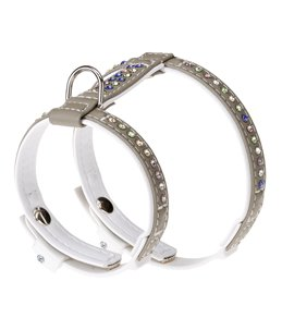Ένα κομψό και ανθεκτικό αξεσουάρ ιδανικό για μικρόσωμα σκυλάκια ή γατούλες που αγαπούν τη λάμψη. Το πολυτελές αυτό περιλαίμιο σε γκρι-λευκή απόχρωση είναι διακοσμημένο με αστραφτερά στρας σε διακριτικά χρώματα, χαρίζοντας μοναδικό στυλ σε κάθε βόλτα.
