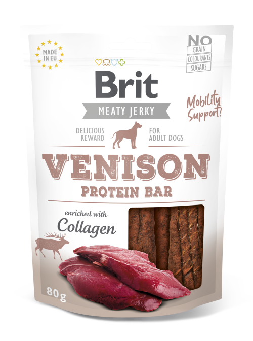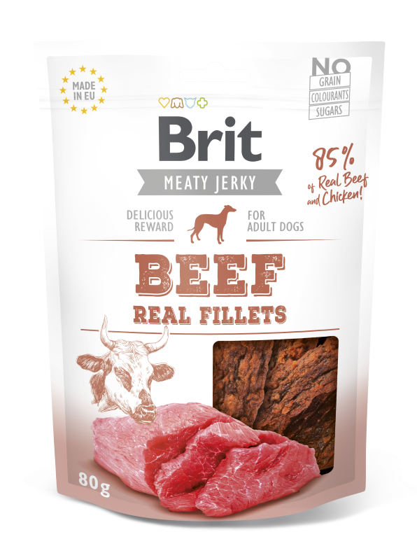 Τα Brit Care Jerky Snacks παρασκευάζονται από την σύνθεση επιλεγμένων κομματιών κρέατος, υπερτροφών και άλλων λειτουργικών συστατικών. Η διαδικασία της ξήρανσης γίνεται αργά με αέρα σε χαμηλή θερμοκρασία ώστε να διατηρούνται η γεύση και τα χαρακτηριστικά του κρέατος ενώ παράλληλα διασφαλίζεται η καταστροφή όλων των βλαβερών μικροοργανισμών βασιζόμενη στo σύστημα διαχείρισης ποιότητας (QMS-quality management system). Είναι ένα υγιεινό σνακ που περιέχει άπαχη πρωτεΐνη και απαραίτητα αμινοξέα, συστατικά για την θρέψη των μυών, συμβάλει στην υποστήριξη του δέρματος και της ποιότητας του τριχώματος, στην εξασφάλιση υγιούς ανάπτυξης, στην πρόληψη της παχυσαρκίας, στην βελτίωση της υγείας των δοντιών μέσω της μάσησης.