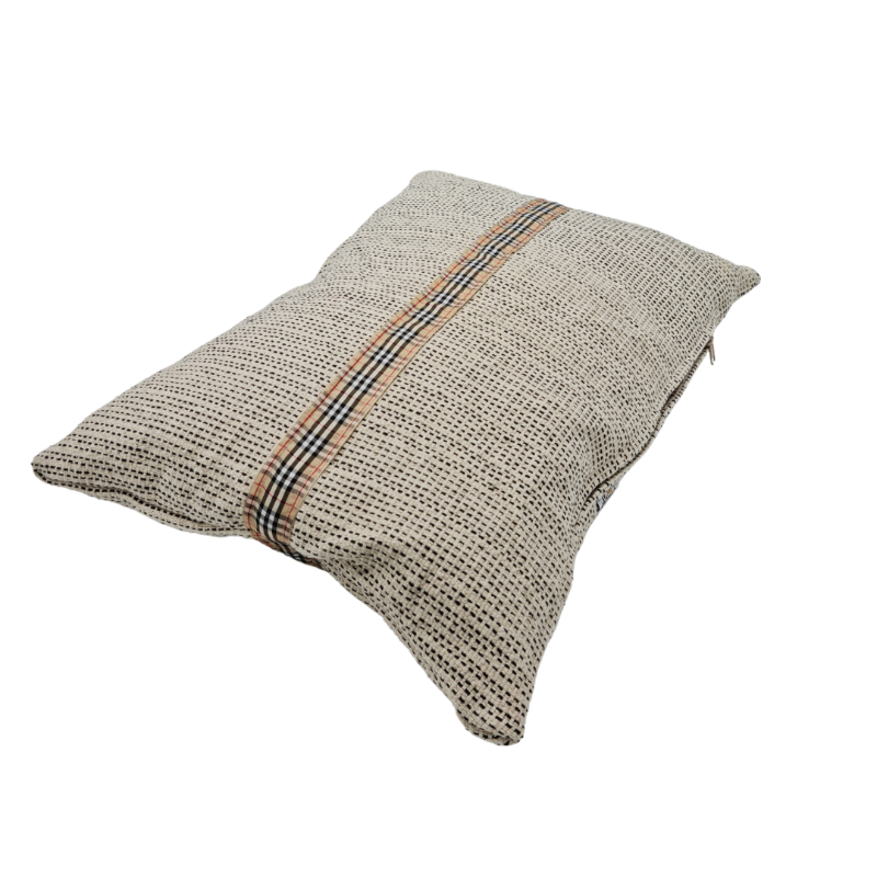 Mαξιλάρα σκύλου-γάτας σε μπεζ χρώμα με διακοσμητικό φιογκάκι. Κατάλληλη για όλες τις εποχές. Ιδανική και για τοποθέτηση σε κουτί μεταφοράς. Με υποαλλεργικό γέμισμα και φερμουάρ ώστε να μπορείτε να τη πλένετε εύκολα.