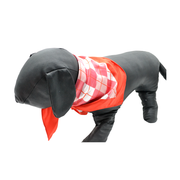 Μπαντάνα σκύλου σε καρό κόκκινο με ροζ λεπτομέρειες!