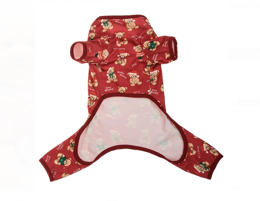 Ζέστανε το κατοικίδιό σου με αυτό το γιορτινό χριστουγεννιάτικο πιτζαμάκι σε κλασικό κόκκινο χρώμα, διακοσμημένο με χαριτωμένα αρκουδάκια. Ιδανικό για την περίοδο των Χριστουγέννων, προσφέρει άνεση, ζεστασιά και μια παιχνιδιάρικη festive διάθεση για μικρούς και μεγάλους.