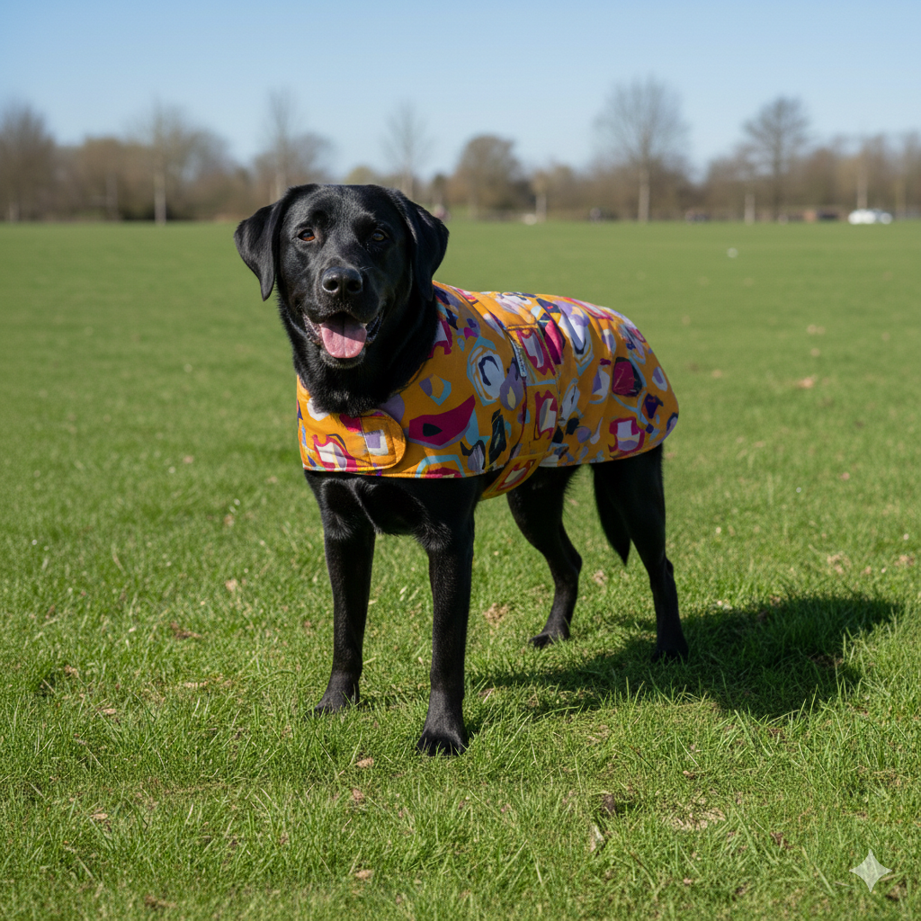 Αδιάβροχο για σκύλους με επένδυση απο ζεστό ύφασμα και εύκολο κλείσιμο με σκρατσ.