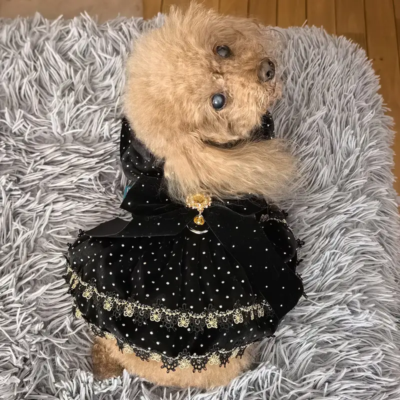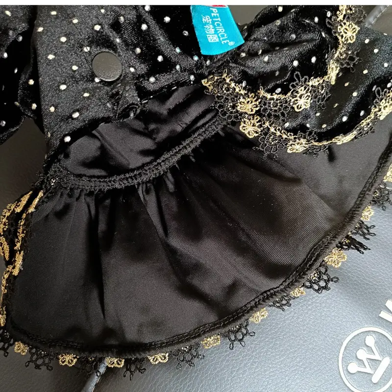 Η απόλυτη glam εμφάνιση για τη μικρή σου fashionista! ✨ Το Velvet Beauty Dress είναι ένα κομψό ρουχαλάκι για σκύλους, φτιαγμένο από βελούδινο μαύρο ύφασμα με χρυσές λεπτομέρειες, που χαρίζει πολυτέλεια και άνεση σε κάθε εμφάνιση. Διαθέτει διακοσμητικό φιόγκο με χρυσή αγκράφα στη ράχη. Ιδανικό για βόλτες, φωτογραφίσεις ή ειδικές περιστάσεις – γιατί κάθε σκυλάκι αξίζει να νιώθει μοναδικό! 🖤🐾