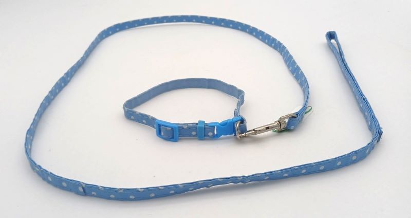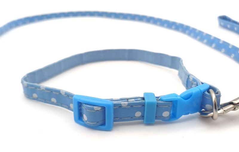 Σετ οδηγός-περίλαίμιο σκύλου-γάτας Γαλάζιο Πουά
