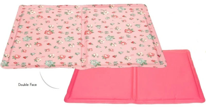 Στρώμα δροσιάς σκύλου και γάτας της Ferribiella με διπλή όψη και φλοράλ σχέδιο! Πλένεται και δεν χρειάζεται ψύξη . Δροσίζει χάρη στην πίεση που παράγεται από το σώμα του ζώου, χωρίς πρόσθετα βοηθήματα όπως ηλεκτρικό ρεύμα ή νερό και χωρίς να χρειάζεται να το βάλετε στην κατάψυξη ή το ψυγείο. Το τζελ που περιέχεται στο χαλάκι δημιουργεί μία χαμηλότερη κατάσταση θερμοκρασίας από εκείνη του ζώου δροσίζοντάς το και ρυθμίζοντας τη θερμοκρασία του σώματος