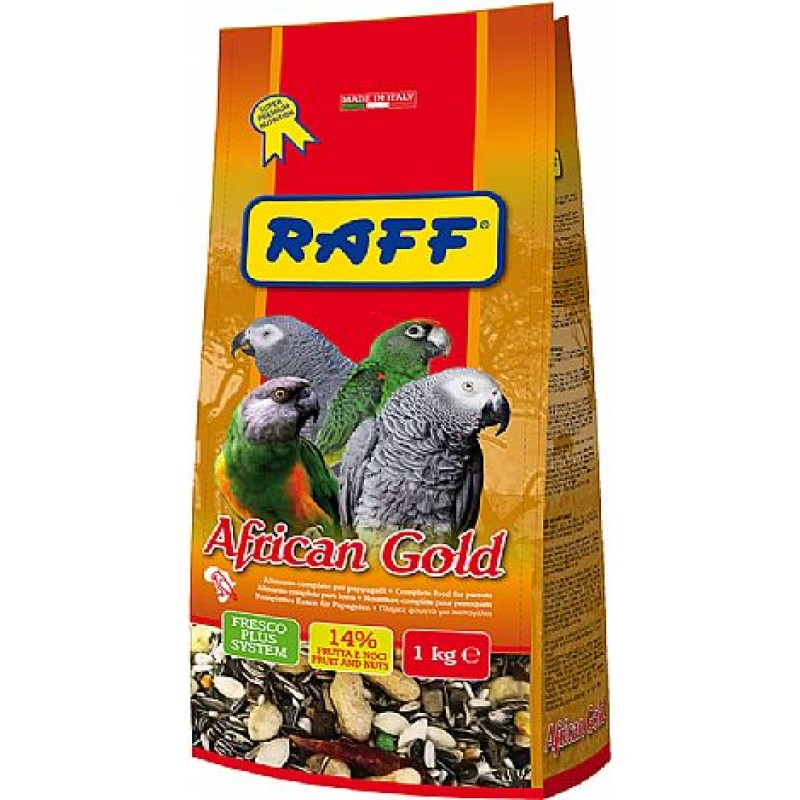 Η Raff African Gold είναι μια ισορροπημένη και πλήρης τροφή, ειδικά σχεδιασμένη για αφρικανικούς παπαγάλους όπως οι Ζάκο, οι Παπαγάλοι Σενεγάλης και άλλα είδη μεσαίου και μεγάλου μεγέθους. Η σύνθεσή της περιλαμβάνει ένα εκλεκτό μείγμα από σπόρους, φρούτα και ξηρούς καρπούς, προσφέροντας όλα τα απαραίτητα θρεπτικά συστατικά για υγεία, ζωντάνια και όμορφο φτέρωμα.