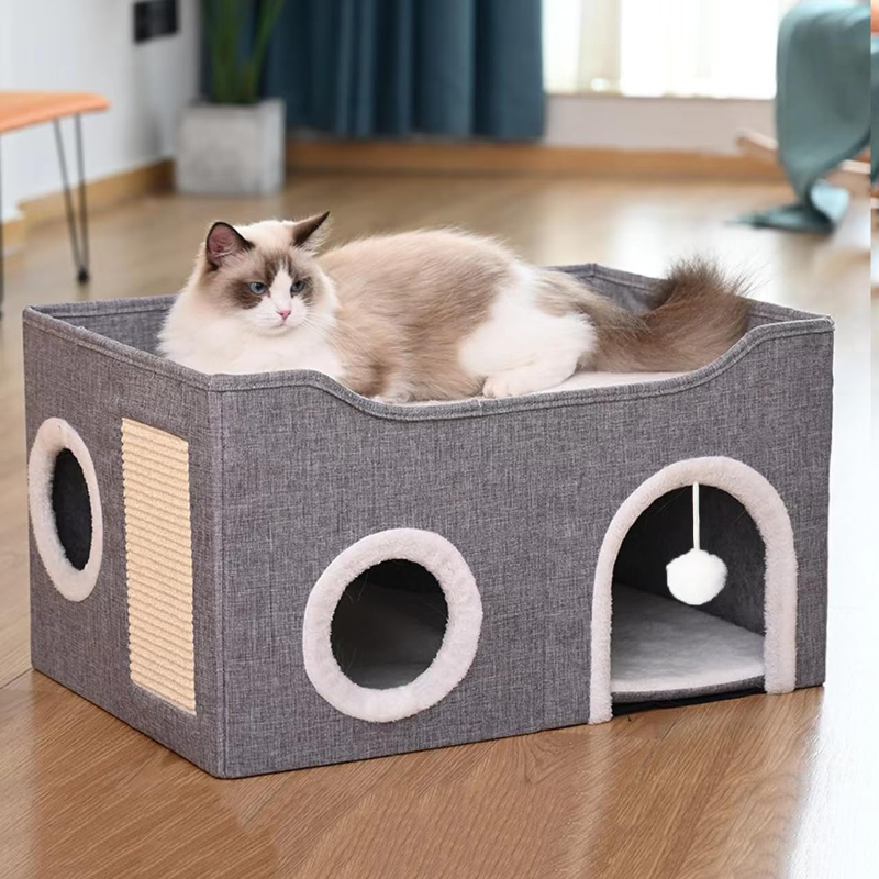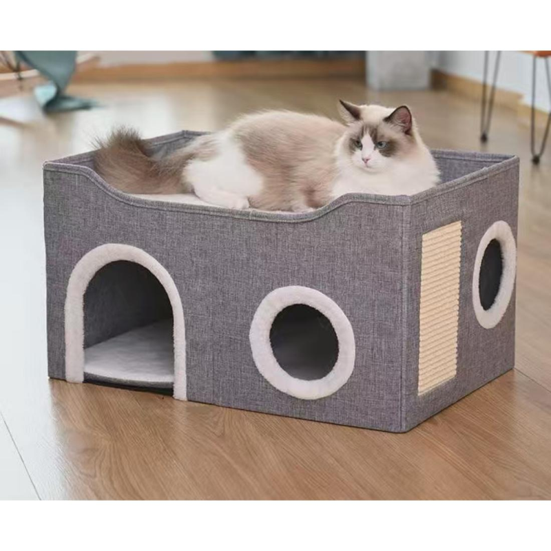 Το ονυχοδρόμιο-σπιτάκι σε γκρι χρώμα από είναι το ιδανικό “καταφύγιο” για τη γάτα σου: με άνετη φωλίτσα, δύο παραθυράκια και σχοινί από σιζάλ για ξύσιμο νυχιών, προσφέρει ασφαλή διασκέδαση και χαλάρωση σε έναν καλαίσθητο και κομψό χώρο. Με διαστάσεις 55×40×65 cm, είναι αρκετά φιλόξενο και πρακτικό για κάθε σπίτι.