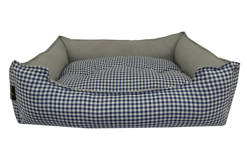Κρεβατάκι σκύλου γάτας σε μπλε ή ροζ καρό χρώμα.